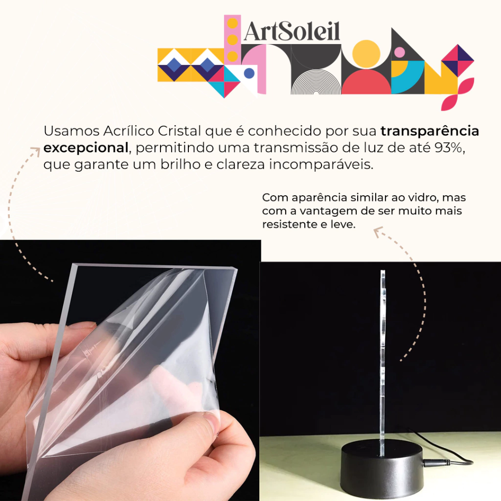 – Acrílico: Corte de perfeita precisão, feito à laser e gravação especial